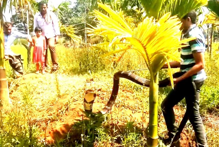 ಸುಮಾರು ಒಂದು ವಾರದಿಂದ ಭತ್ತಗದ್ದೆ ಹಾಗು ಅಡಿಕೆತೋಟಗಳಲ್ಲಿ ಕಾಣಿಸಿಕೊಳ್ಳುತ್ತಿದ್ದ ಹಾವನ್ನು ಗ್ರಾಮಸ್ಥರ ಮನವಿ ಮೇರೆಗೆ ಹಾಗೂ ಅರಣ್ಯ ಇಲಾಖೆ ಸಹಕಾರದೊಂದಿಗೆ ಸೆರೆ ಹಿಡಿದು ಸಮೀಪದ ಕಾಡಿಗೆ ಬಿಡಲಾಯಿತು. ಸಾಮಾನ್ಯವಾಗಿ ಗದ್ದೆ, ತೋಟಗಳಲ್ಲಿ ಕಾಣಿಸುವ ಕಾಳಿಂಗಗಳನ್ನು ಹಿಡಿವ ಅಗತ್ಯ ಇರುವುದಿಲ್ಲ , ಆದರೆ ಮೇಲಿನ ಘಟನೆಯಲ್ಲಿ ಕಾಳಿಂಗ ಪದೇ ಪದೇ ಜನರ ಕಣ್ಣಿಗೆ ಬಿದ್ದು ಜನರು ಭಯಗೊಳ್ಳಲು ಕಾರಣವಾಗಿತ್ತು.