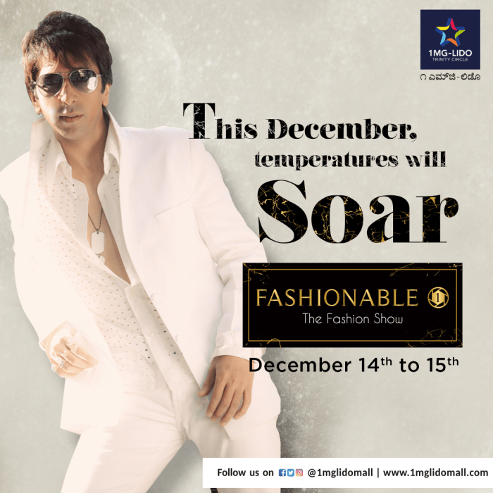 Commenting on the initiative, Suman Lahiri, Chief Operating Officer, 1MG -Lido Malls commented, “This December, temperatures will soar. We are absolutely thrilled and look forward a successful fifth edition. Being the signature annual fashion property, Fashionable One intends to uphold the hi-fashion quotient and appeal to the fashion connoisseurs of the city. We hope to grow bigger and better with every edition”.