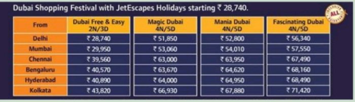 Attractively priced and highly popular, JetEscapes’ Dubai Holidays packages aim to offer an enhanced shopping experience at the annual festival and are inclusive of return Economy air fares, airport transfers, hotel accommodation with breakfast, city tours, travel insurance and the chance to earn 5 JPMiles on every Rs.100 spent. The incredible 6-week sale extravaganza is scheduled from 26th December, 2018 to 2nd February, 2019.