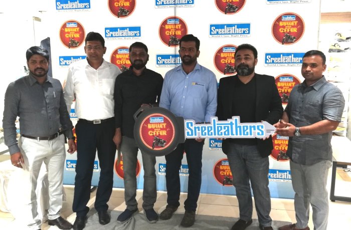 Bengaluru, 20 December, 2018 : Sreeleathers, , the leading footwear chain offering wide range of quality footwear in the latest styles announced the winners of the “Bullet Raaja” contest, today. Mr Sekhar Dey, Partner, Sreeleathers and Mr SushantoDey, Partner, Sreeleathers, the Chief Guests on the occasion announced the winners and presented a brand new Bullet 350 CC motorcycle to each winner of the contest. The winners were among the 5,000 participants of contest scheme from Bengaluru city.