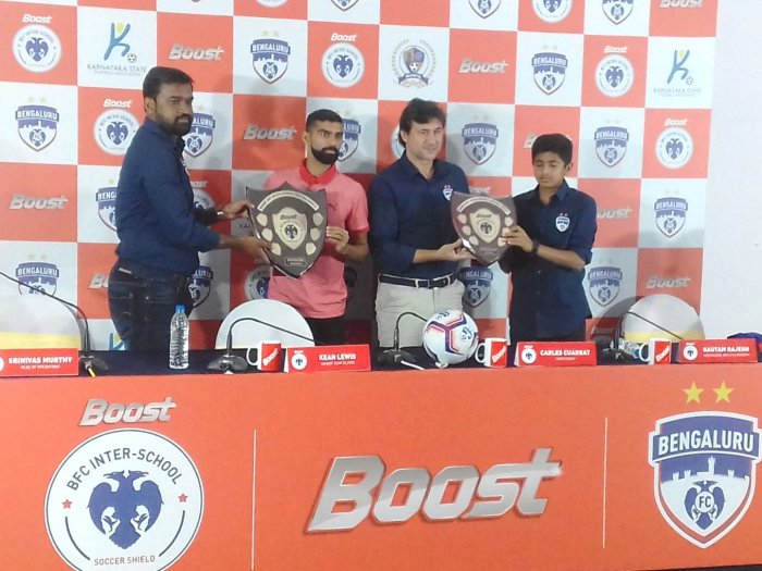 Bengaluru 11 January, 2019: The second edition of the BOOST BFC inter School Soccer Shield is all sot to kick-off at the Bangalore Football Stedium on January 15, the cub announced on Fricay Bigger in scale compared to the last edition, tha Soccer Shield will see 1000+ children from over 80 teams from schoos across the city battle it out in four age categories (U8, U 10, U12 and U14). ine first, the competition has also beon axtenced to girls n the U3, U10 and U12 category.