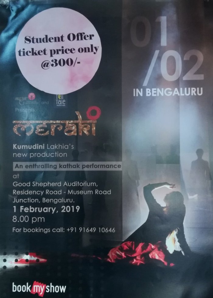 ಬೆಂಗಳೂರು , ಜನವರಿ 2019 : ಮೆರಡೂ ಸಮ್ಥಿಂಗ್ ವಿಥ್ಕ್ರಿಯೇಟಿವಿಟಿಆರ್ ಲವ್ ) ಆ್ಯನ್ಎಂಥಾಆಂಗ್ಕಥಕ್ ಪರ್ಫಾರ್ಮೆನ್ – 2019 ಎಂಬ ಶೀರ್ಷಿಕೆಯ ಕಥಕ್ ನೃತ್ಯ ಕಾರ್ಯಕ್ರಮವನ್ನು ಆಯೋಜಿಸಲಾಗಿದೆ . ತನ್ನ ವಿಶಿಷ್ಟ ಶೈಲಿಗಳಿಂದ ನಿರೂಪಿಸುವ ಇದುಕದಂಬ್ಘರಾನಾದಲ್ಲರೂಪುಗೊಂಡಿದೆ . ಕುಮುದಿನಿ ಲanಯಾತಮ್ಮ ಶ್ರೇಷ್ಠ 12 ನೃತ್ಯಗಳನ್ನು ಪ್ರದರ್ಶಿಗಳಿದ್ದಾರೆ . ಕದಂಬ್ ಪ್ರಸ್ತುತಪಡಿಸುವ ಮೆರಕಿ 12 ಮುಂಚೂಣಿಯಕಥಕ್ಕಲಾವಿದರನ್ನು ಒಳಗೊಂಡಿದ್ದು ಪ್ರತಿಯೊಬ್ಬರೂ ತಮ್ಯಅನನ್ಯರೆಪರ್ಟರಿ ಹಿನ್ನೆಲೆ ಹೊಂದಿದ್ದಾರೆ ಮತ್ತು ಶ್ರೀಮತಿ ಕುಮುದಿನಿ ಲಖಯಾಅವಲಂದ ತರಬೇತಿ ಪಡೆದಿದ್ದಾರೆ . ಮೆರಕಿಕಥಕ್ನಲ್ಲ ಚಿತ್ರಿಸಲಾದ ಕಥೆಯಾಗಿದ್ದು ಹಿಂದೂಸ್ಥಾನಿ ಸಂಗೀತ ಹಾಗೂ ಶಾಸ್ತ್ರೀಯ ಸಂಗೀತ ಒಳಗೊಂಡಿದೆ .