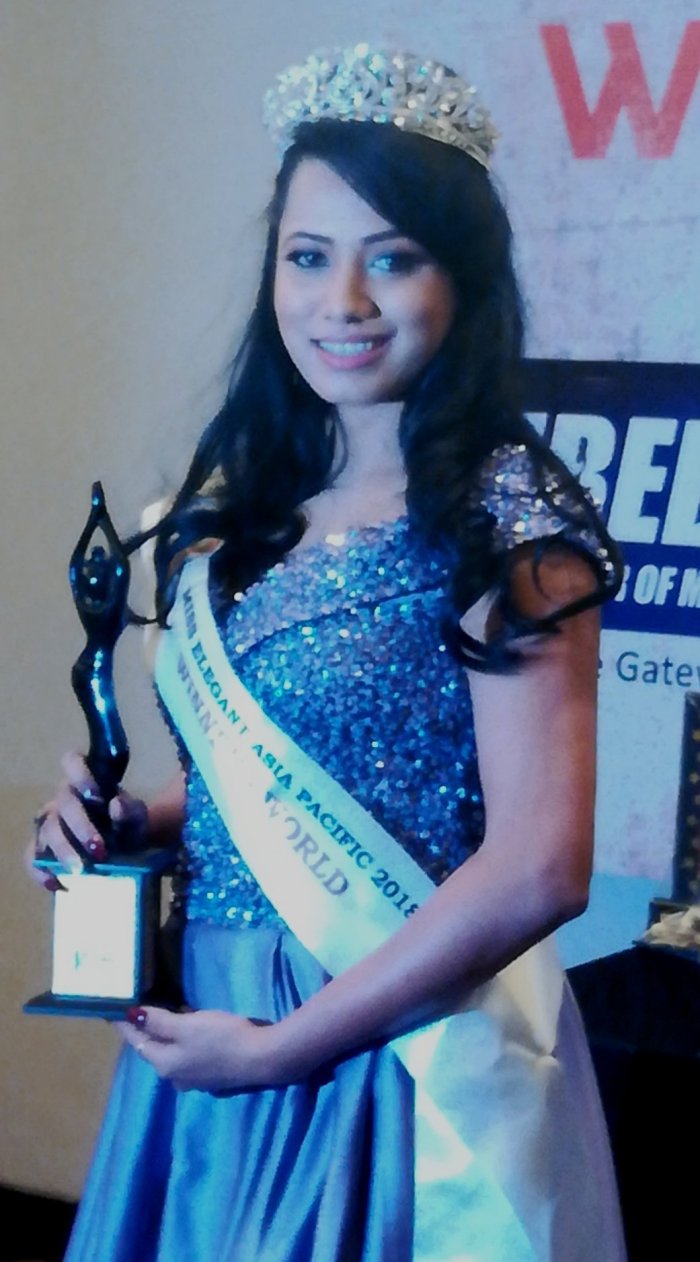 Bengaluru, 13 th Feb 2019: Nibedita hailing from Gateway of Odisha, brought laurels to our country by winning the Miss Elegant Asia Pacific 2018-19 Crown. The Contest was Organized by Zevents In& Gulf Uniue International LLC on Dec 14th to 17 th , at Muscat Oman.