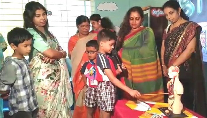 ವಿಜ್ಞಾನ ಫೆಸ್ನಲ್ಲಿ ಟೈನಿ ಟೊಟ್ಸ್ 4 ರಿಂದ 5 ವರ್ಷ ವಯಸ್ಸಿನ ಮಕ್ಕಳು ವೈಜ್ಞಾನಿಕ ಯೋಜನೆಗಳನ್ನು ಪೋಷಕರು ಮತ್ತು ಗೆಳೆಯರ ಎದುರು ಪ್ರದರ್ಶಿಸಿದರು .