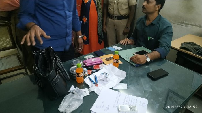 The security staff of Mysore Satellite Bus Station of Bengaluru and Mysore Bus station were on alert, today they observed one lady loitering in the bus station without any purpose and when they questioned and checked she was in possession of some powder, cutting player and two small 200 ml bottle of juices. Upon further questioned she spilled that she has been involved in 2 such cases of robbing of old woman in KSRTC Buses by giving drug laced eatbles. Immediately local police and Lashkar PS have been informed. Lashkar PS have rushed to satellite bus station arrested the lady.