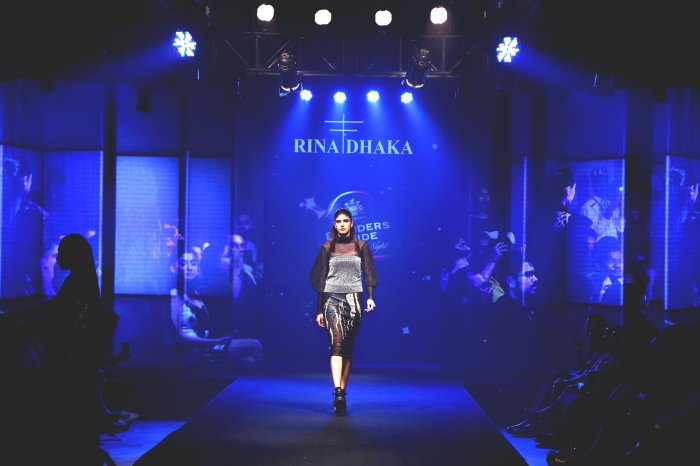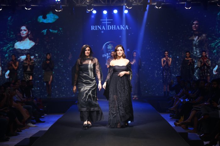Talking about her collection, designer Rina Dhaka said, “My collection for Blenders Pride Magical Nights is a fusion of the seventies and diversity, where mixing and matching is the charm. With elaborate details such as big sleeves, romance, shoulders, knife pleats and a slouch, the collection is a dramatic representation of style. I take immense pride in showcasing my design sensibilities through this prestigious platform.”
