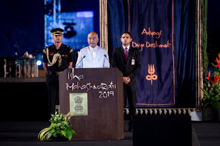 ಮಾರ್ಚಿ 4, 2019, ಕೊಯಮತ್ತೂರು: ಭಾರತದ ರಾಷ್ಟ್ರಪತಿಗಳಾದ ಶ್ರೀ. ರಾಮನಾಥ್ ಕೋವಿಂದ್-ರವರು ಲಕ್ಷಾಂತರ ಜನ ಸೇರಿದ್ದ ಈಶ ಯೋಗ ಕೇಂದ್ರದಲ್ಲಿನ ಮಹಾಶಿವರಾತ್ರಿ ಸಂಭ್ರಮಾಚರಣೆಯಲ್ಲಿ ಪಾಲ್ಗೊಂಡರು. ಈ ವರ್ಷ ಈಶ ತನ್ನ 25 ನೇ ಮಹಾಶಿವರಾತ್ರಿಯನ್ನು ಆದಿಯೋಗಿಯ ಸಮ್ಮುಖದಲ್ಲಿ ರಾತ್ರಿಯಿಡೀ ನಡೆದ ಕಣ್ಮನ ಸೆಳೆಯುವ ಸಾಂಸ್ಕೃತಿಕ ಪ್ರದರ್ಶನಗಳೊಂದಿಗೆ ಆಚರಿಸಿತು. ಉತ್ಸವವು ಸಂಜೆ 6 ಕ್ಕೆ ಆರಂಭವಾಗಿ ಬೆಳಿಗ್ಗೆ 6 ಕ್ಕೆ ಮುಕ್ತಾಯವಾಯಿತು. ಈ ಸಮಾರಂಭದಲ್ಲಿ ಭಾರತದ ರಾಷ್ಟ್ರಪತಿಗಳು ಮುಖ್ಯ ಅತಿಥಿಗಳಾಗಿದ್ದರು.
