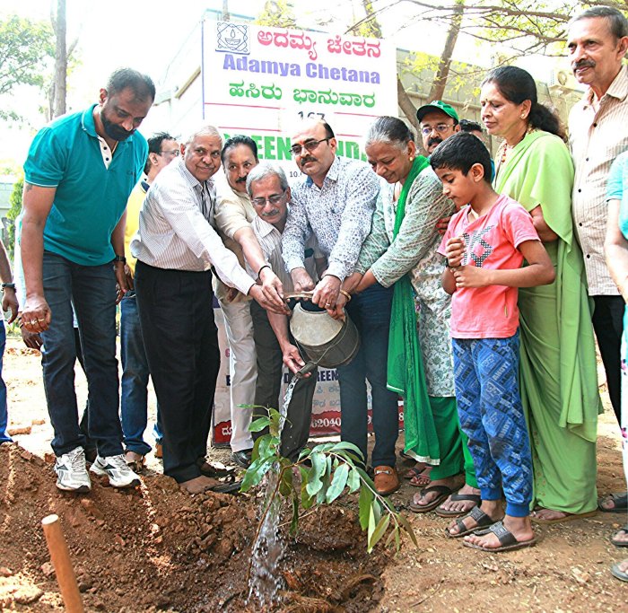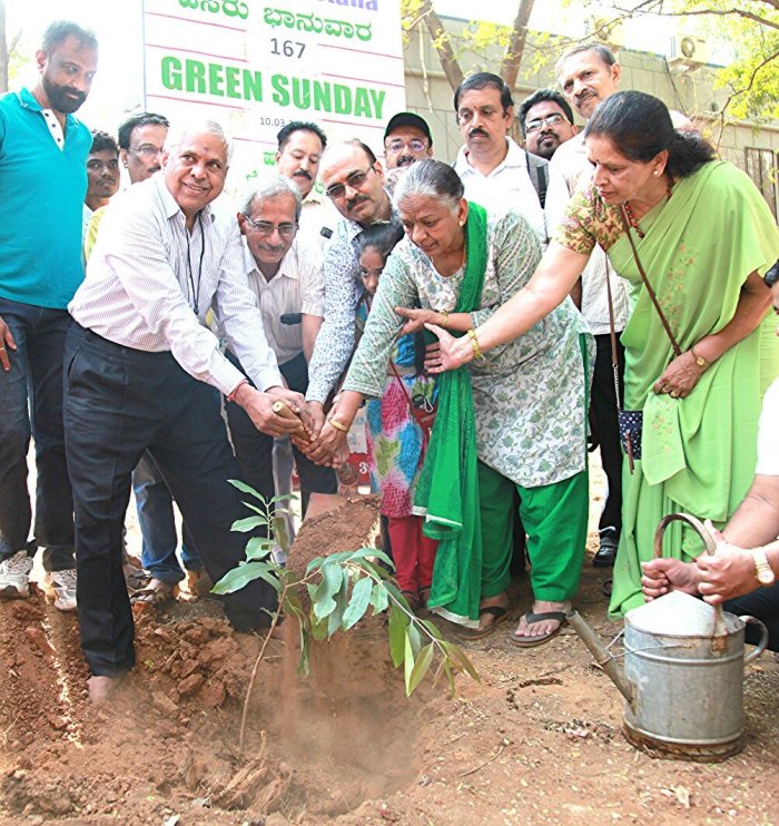 sri M.K. Ramesh planting a tree at 167 th Green Sunday programme att ISEC campus primeses on 10-03-2019.