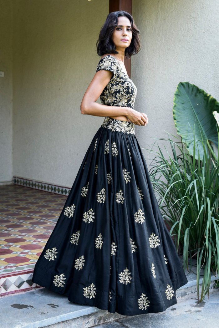 This collection depicts the spring and summer with its use of soft florals and fabrics like organza in both their soft pink toned and fiercely black garments. Mrunalini Rao’s designs bridges the line between traditional and modern giving a fresh look
