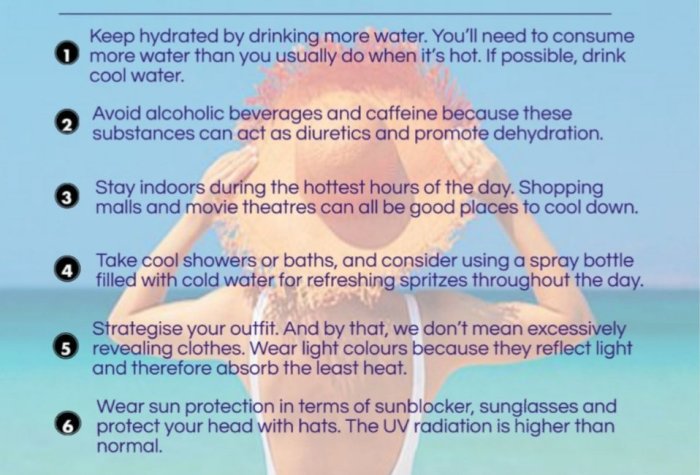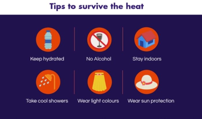 Please keep everyone inclusive of yourself hydrated. Everyone should be consuming about 3 litres of fluid everyday. Monitor everyone’s blood pressure as frequent as possible. Many may get heat stroke.