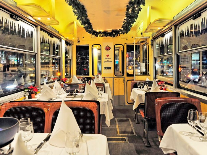 Experience fondue tasting to a whole new level with a ride on the Fondue Tram in Zurich. As you dip your fork into the melted cheese, you can watch the lights of Zurich’s inner city pass by, as the old – timer tram departs trundles through the streets.