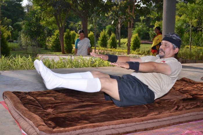 Pavana Mukthasana Yoga Posture; WR62 1700 Abdominal Push-Ups in 1 Hr using an open Gym equipment, etc. He is am happy to inform that following very rigorous systematic practice during the last 3 months , he has successfully set his 65th (Inaugural) World record “1 Hr. ABSOLUTE NON-STOP NAUKASANAS”, on Sunday, 14 April, 2019, commencing at 7.30 A.M., at Prof. Satish Dhawan Park, Tatanagar Kodigehalli, Bangalore 560092. This extremely taxing and physically quite challenging record of balancing in the boat posture was attempted defying my present age of 63! He had committed to the Books of World Records to perform 300 consecutive Naukasanas in under 45 Minutes. However, with a high level of focus and hard determination,