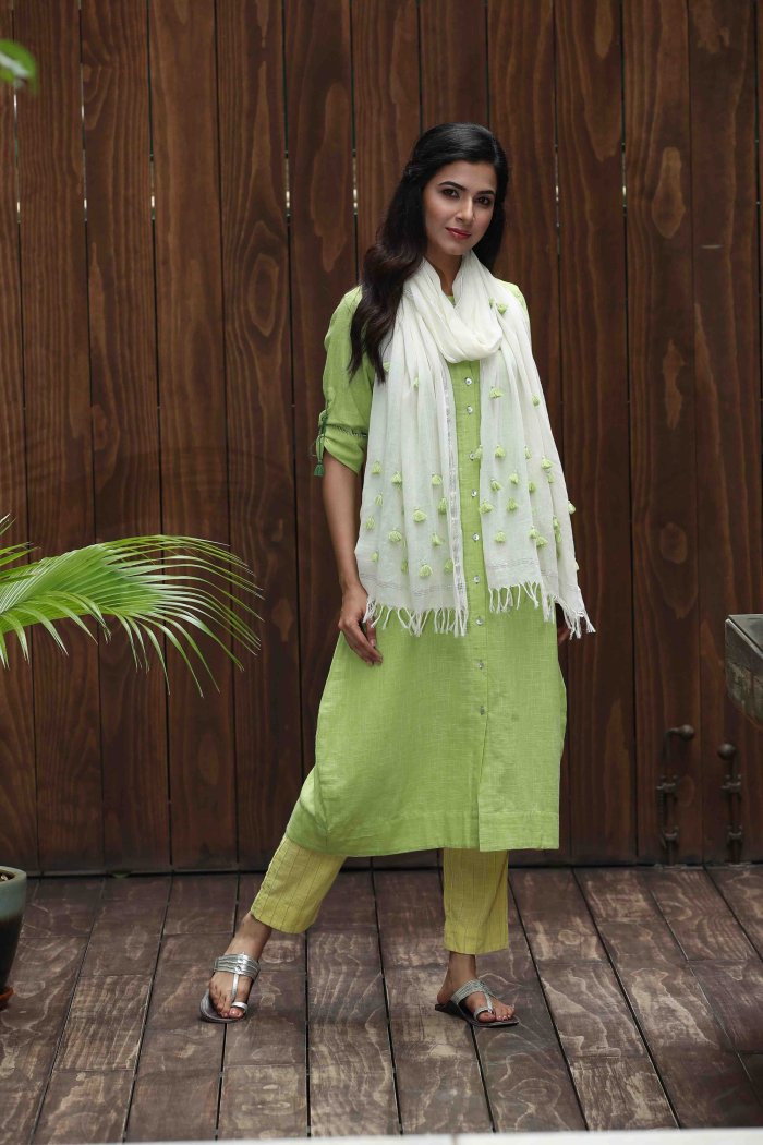 बाँSuri glides effortlessly from soft pinks to powder blues to sunny lemons to verte green, a palate which soothes the senses and calms the mind. An array of well-crafted and easy to wear bottoms which not only complete the sophisticated appearance but also breathe easy effortless look.