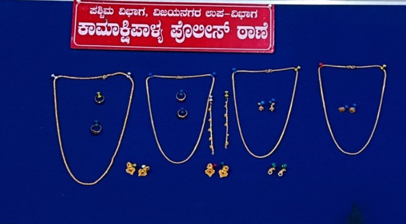 ದಿನಾಂಕ:27.04.2023 ರಂದು ಬೆಳಿಗ್ಗೆ 09-30 ಸಮುಯದಲ್ಲಿ ಪಿರಾದುದಾರರು ತಮ್ಮ ಮನೆಗೆ ಬೀಗ ಹಾಕಿಕೊಂಡು ಕೆಲಕ್ಕೆ ಹೋಗಿದ್ದು ಸಂಜೆ ಸುಮಾರು 06-00 ಗಂಟೆಯ ಸಮಯದಲ್ಲಿ ವಾಪಸ್ಸು ಮನೆಗೆ ಬಂದು ನೋಡಲಾಗಿ ಪಿರಾದುದಾರರ ಮನೆಯ ಬಾಗಿಲನ್ನು ಯಾರೋ ಕಳ್ಳರು ಮುರಿದು ರೂಮಿನ ಬೀರುವಿನಲ್ಲಿಟ್ಟಿದ್ದ ಸುಮಾರು 47 ಗ್ರಾಂ ತೂಕದ ಚಿನ್ನಾಭರಣಗಳನ್ನು ಯಾರೋ ಕಳ್ಳತನ ಮಾಡಿಕೊಂಡು ಹೋಗಿರುತ್ತಾರೆ ಎಂದು ಪಿರಾದುದಾರರು ದೂರು ನೀಡಿದ್ದು ಈ ಬಗ್ಗೆ ಕಾಮಾಕ್ಷಿಪಾಳ್ಯ ಪೊಲೀಸ್ ಠಾಣೆಯಲ್ಲಿ ಕಳ್ಳತನ ಹರಣ ದಾಖಲಿಸಿಕೊಂಡು ತನಿಖೆ ಕೈಗೊಂಡ ಪೊಲೀಸರು ಒಬ್ಬ ವ್ಯಕ್ತಿಯನ್ನು ಬಂಧಿಸಿ, ಆತನು ನೀಡಿದ ಮಾಹಿತಿಯ ಮೇರೆಗೆ ಆತನಿಂದ ಸುಮಾರು ರೂ.8,22,000/- ಮೌಲ್ಯದ 137 ಗ್ರಾಂ ತೂಕದ ಚಿನ್ನಾಭರಣ ವಶಪಡಿಸಿಕೊಳ್ಳಲಾಗಿದೆ.