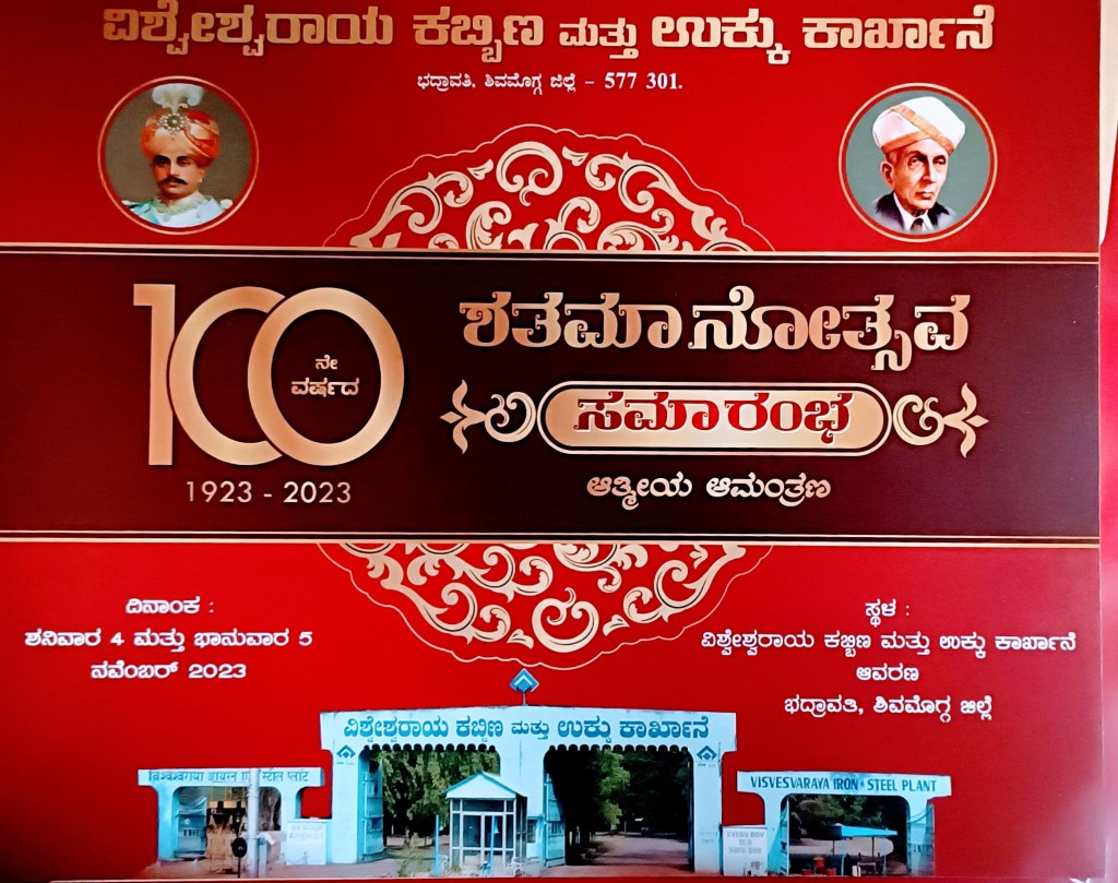 ನಾಡಿನ ಹೆಮ್ಮೆಯ ವಿಶ್ವೇಶ್ವರಾಯ ಕಬ್ಬಿಣ ಮತ್ತು ಉಕ್ಕು ಕಾರ್ಖಾನೆಗೆ ಶತಮಾನೋತ್ಸವ ಸಂಭ್ರಮ : ನವೆಂಬರ್ 4 ಮತ್ತು 5 ರಂದು ಭದ್ರಾವತಿಯಲ್ಲಿ ವೈಭವದಿಂದ ಆಚರಣೆ.