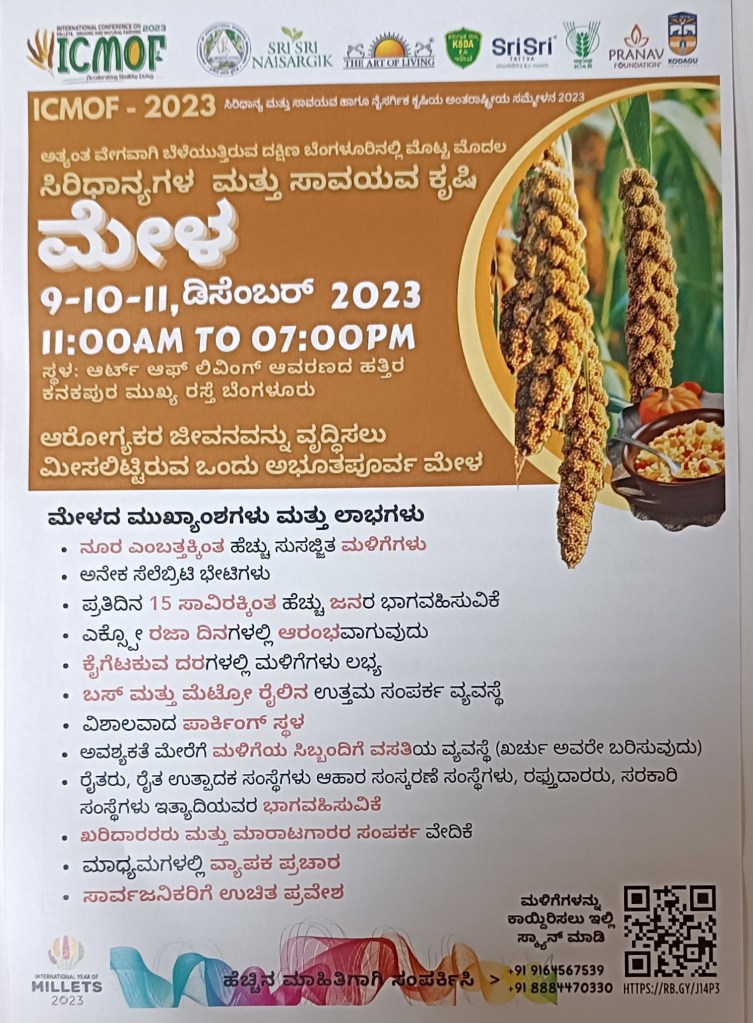 ಡಿ.9-11 : ವಿಶ್ವ ಸಿರಿಧಾನ್ಯಗಳ ಸಾವಯವ ನೈಸರ್ಗಿಕ ಕೃಷಿ ಮೇಳ*