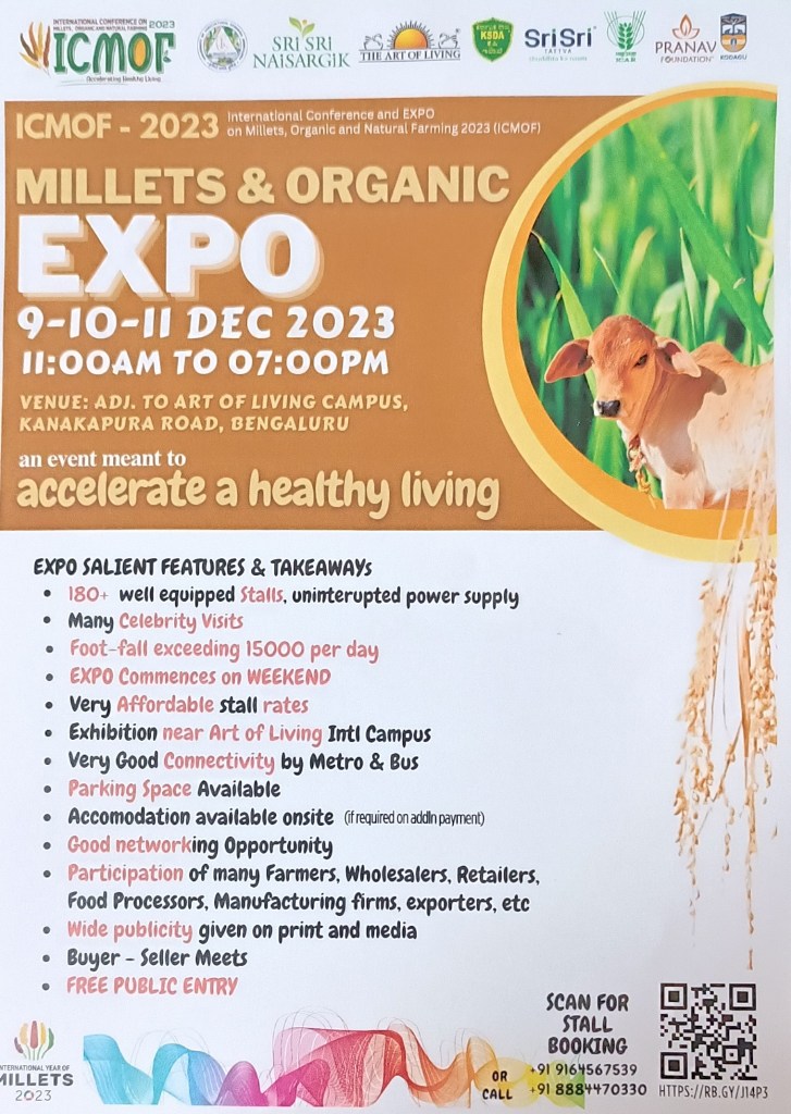MILLETS ORGANIC EXPO-2023 : With more than 180 stalls being opened, a mammoth exhibition of agricultural products is being organized to explain different concepts including cereals, organic and natural farming inputs, seeds, marketing system, farming practices to achieve high yield, which has gained wide global significance. . Agricultural experts and interested farmers from abroad will participate in this fair.