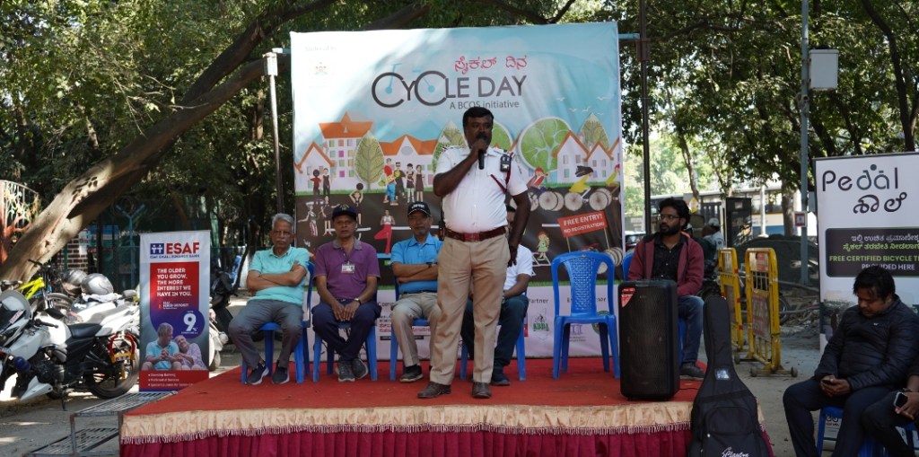 Notable figures gracing the occasion included Assistant Sub Inspector Basuvaraj from the KG Halli Traffic Police Station, Srinidhi representing DULT, esteemed members from the Karnataka Bicycle Association, and Sashi Kumar, the Regional Marketing Manager of ESAF Small Finance Bank. Their presence underscored the collaborative effort in promoting sustainable transportation solutions.