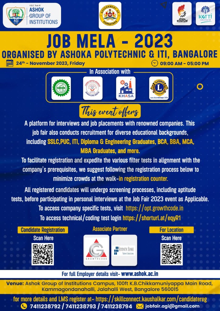Job Mela Bangalore provides an invaluable opportunity for job-seeking candidates to connectwith recruiters, employers, and hiring managers. This event offers a platform for interviewsand job placements with renowned companies. The fresher’s job fair also conducts campusrecruitment for diverse educational backgrounds, including SSLC/PUC, ITI, Diploma &Engineering Graduates, BCA, BBA, MCA, MBA Graduates, and more.