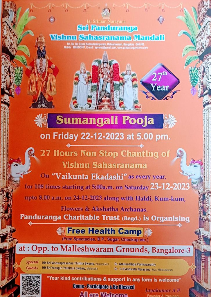 Sumangali Pooja and Bruhat Vishnu Sahasranama Parayana Maha Yagna on theoccasion of Vaikunta Ekadashi’ as every year with Free Health Camp.