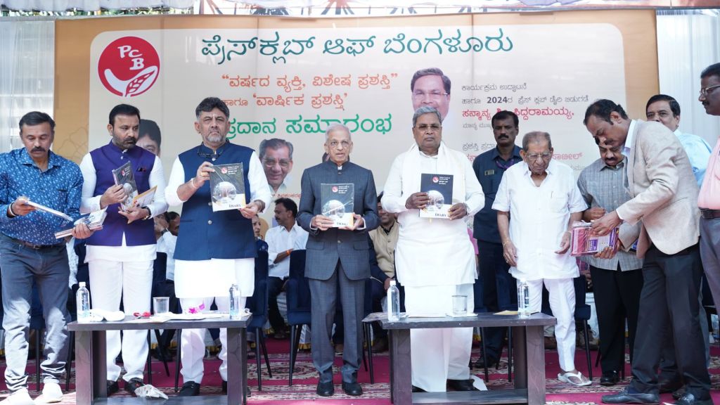 முதல்வர் சித்தராமையா பெங்களூருவின் பிரஸ் கிளப் “ஆண்டின் சிறந்த நபர்-சிறப்பு நபர்” மற்றும் ஆண்டு விருதுகள் வழங்கும் விழாவை தொடங்கி வைத்து பிரஸ் கிளப் டைரி 2024 ஐ வெளியிட்டார்.