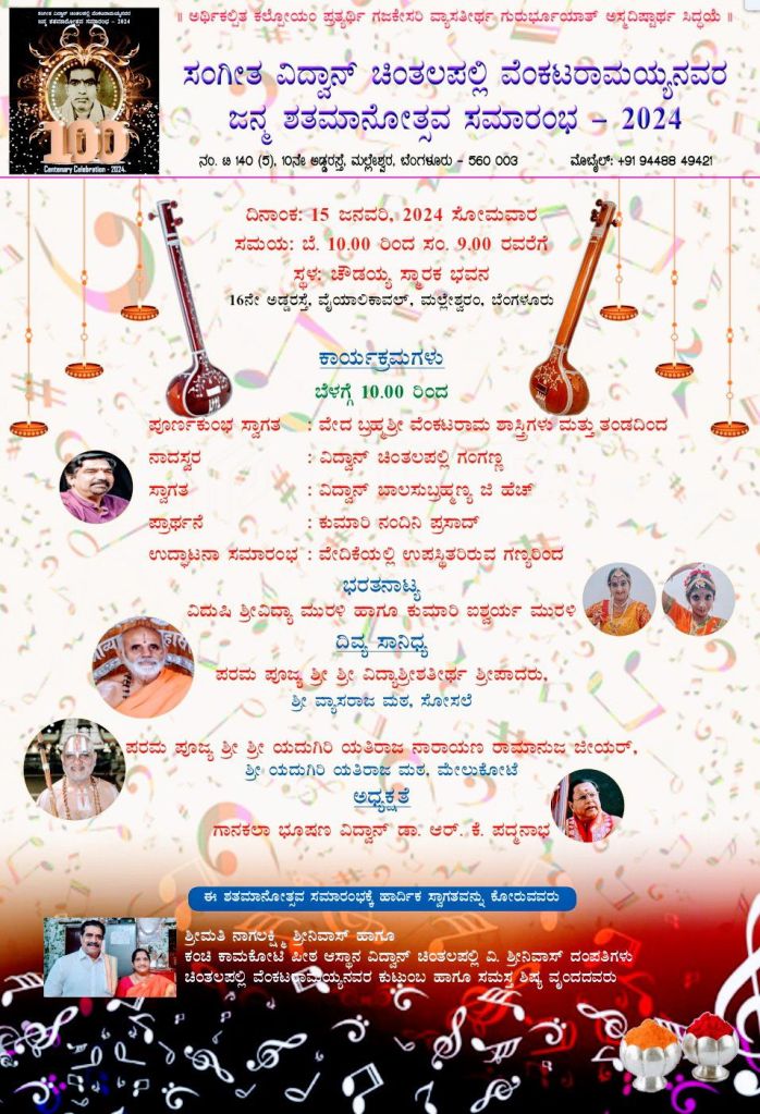 ಸಂಗೀತ ವಿದ್ವಾನ್ ಚಿಂತಲಪಲ್ಲಿ ಶ್ರೀ ವೆಂಕಟರಾಮಯ್ಯನವರ ಜನ್ಮ ಶತಮಾನೋತ್ಸವ ಸಮಾರಂಭ – 2024 ಮೊ: 94488 49421