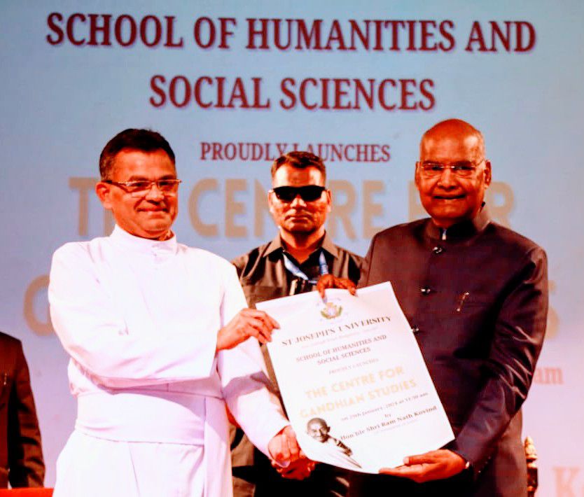 2. Launch of St. Joseph’s University Gandhian Centre: In a symbolic gesture commemorating the upcoming 76th Shaheed Diwas of Bapu, Mahatma Gandhi Ji, President Kovind unveiled the poster of the establishment of the St. Joseph’s University Gandhian Centre. The center aimsserve as a beacon of Gandhian principles, promoting truth, non-violence, and service to