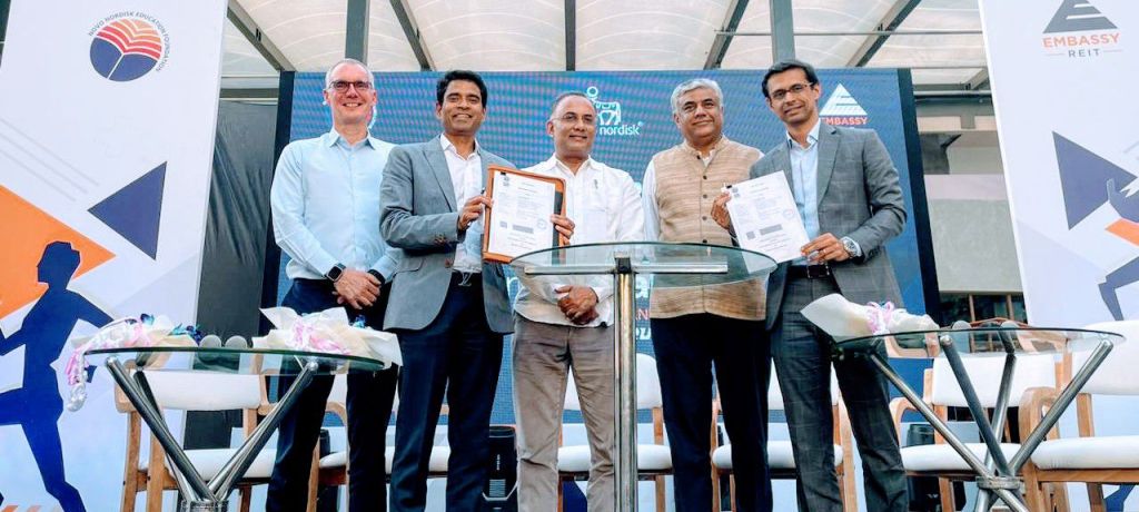 Bangalore, 4 March, 2024: Novo Nordisk Education Foundation (NNEF) and Embassy REIT, India’s first listed REIT and Asia’s largest office REIT by area, have come together in an exciting partnership to champion the cause of ‘Health at Workplace’ for over 1,00,000 employees working at Embassy Manyata Business Park located in North Bengaluru.