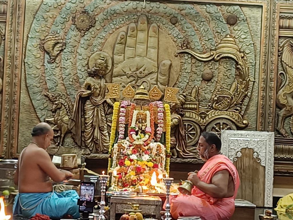 ಬೆಂಗಳೂರು : ಇತ್ತೀಚೆಗೆ ಬೆಂಗಳೂರಿಗೆ ಆಗಮಿಸಿದ ಪರಮಪೂಜ್ಯರ ಅಧ್ಯಕ್ಷತೆಯಲ್ಲಿ ಮಂತ್ರಾಲಯದ ಶ್ರೀ “ಗುರುಸಾರ್ವಭೌಮ” ವಿದ್ಯಾಪೀಠದ ವಿದ್ಯಾರ್ಥಿಗಳಿಗೆ “ಶಾಸ್ತ್ರೀಯ ಪರೀಕ್ಷೆ”ಯನ್ನು ಬೆಂಗಳೂರು ನಗರದ ಪವಮಾನಪುರ ಬಡಾವಣೆಯ ಶ್ರೀ ರಾಘವೇಂದ್ರ ಸ್ವಾಮಿಗಳ ಮಠದಲ್ಲಿ ಮಂತ್ರಾಲಯ ಕ್ಷೇತ್ರದ ಶ್ರೀ ರಾಘವೇಂದ್ರ ಸ್ವಾಮಿಗಳ ಮಠದ ಪರಮಪೂಜ್ಯ ಶ್ರೀ1008 ಶ್ರೀ ಶ್ರೀ ಸುಬುಧೇಂದ್ರತೀರ್ಥ ಶ್ರೀಪಾದಂಗಳವರ ಘನ ಅಧ್ಯಕ್ಷತೆಯಲ್ಲಿ ಶೀಗಳ ಪೂರ್ವಾಶ್ರಮದ ತಂದೆಯವರಾದ ಪಂಡಿತ ಕೇಸರಿ ರಾಜಾ ಎಸ್. ಗಿರಿ ಆಚಾರ್ಯರ ಉಪಸ್ಥಿತಿಯಲ್ಲಿ ವಿಶೇಷ ವಿದ್ಯಾರ್ಥಿಗಳಿಗೆ ಶಾಸ್ತ್ರೀಯ ಪರೀಕ್ಷೆಯ ಕಾರ್ಯಕ್ರಮವು ನೆರವೇರಿತು. ಈ ಪರೀಕ್ಷಾ ಕಾರ್ಯಕ್ರಮದಲ್ಲಿ 45ಕ್ಕೂ ಹೆಚ್ಚಿನ ವಿದ್ವಾಂಸರಿಂದ ಶಾಸ್ತ್ರ ಪರೀಕ್ಷೆಯನ್ನು ನಡೆಸಿ ವಿದ್ಯಾರ್ಥಿಗಳ ಪರೀಕ್ಷೆಯನ್ನು ಕಂಡು ಸಂತೋಷ ವ್ಯಕ್ತಪಡಿಸುತ್ತಾ ವಿದ್ಯಾ ಮಠ ಶ್ರೀ ರಾಯರ ಮಠದ ವಿದ್ಯಾರ್ಥಿಗಳನ್ನು ಕೊಡುಗೆಯಾಗಿ ನೀಡಿದ ಶ್ರೀ ಶ್ರೀ ಪಾದರನ್ನು ಅಭಿನಂದಿಸಿ ಗೌರವಿಸಿ ಸನ್ಮಾನಿಸಿ ನಮಸ್ಕರಸಿದರು. ನಂತರ ಪರಮಪೂಜ್ಯ ಶ್ರೀಪಾದರು ಈ ದಿನ ಜಯನಗರದ ಶ್ರೀ ರಾಘವೇಂದ್ರ ಸ್ವಾಮಿಗಳ ಸನ್ನಿಧಿಯಲ್ಲಿ ಶ್ರೀಮನ್ ಮೂಲ ರಾಮಚಂದ್ರದೇವರ ಸಂಸ್ಥಾನ ಪೂಜೆಯನ್ನು ನೆರವೇರಿಸಿ, ಶ್ರೀ ರಾಘವೇಂದ್ರ ಸ್ವಾಮಿಗಳ ಬಂಗಾರದ ಮೂಲ ಪಾದುಕೆಗಳಿಗೆ ಮತ್ತು ಶ್ರೀ ರಾಘವೇಂದ್ರ ಸ್ವಾಮಿಗಳ ಬೃಂದಾವನಕ್ಕೂ ಮಹಾ ಮಂಗಳಾರತಿಯನ್ನು ನೆರವೇರಿಸಿ, ಭಕ್ತರಿಗೆ ಫಲ ಮಂತ್ರಾಕ್ಷತೆ ಕೊಟ್ಟು ಅನುಗ್ರಹಿಸಿದರು.