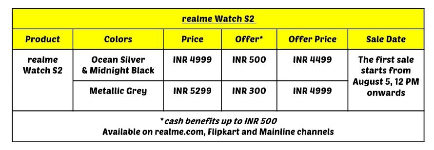 The first sale for realme Watch S2 and realme Buds T300 starts from August 5, 12 PM onwards on realme.com and Flipkart with cash benefits up to INR 500 & INR 300 respectively and the first sale for realme 13 Pro Series 5G is scheduled from August 6, 12 noon onwards on realme.com, Flipkart and Mainline channels