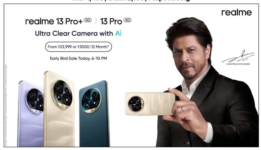 The realme 13 Pro+ 5G is available in two exquisite colors: Monet Gold and Emerald Green, and three storage variants: 8GB+256GB priced at INR 29,999, 12GB+256GB priced at INR 31,999 and 12GB+512GB priced at INR 33,999.
