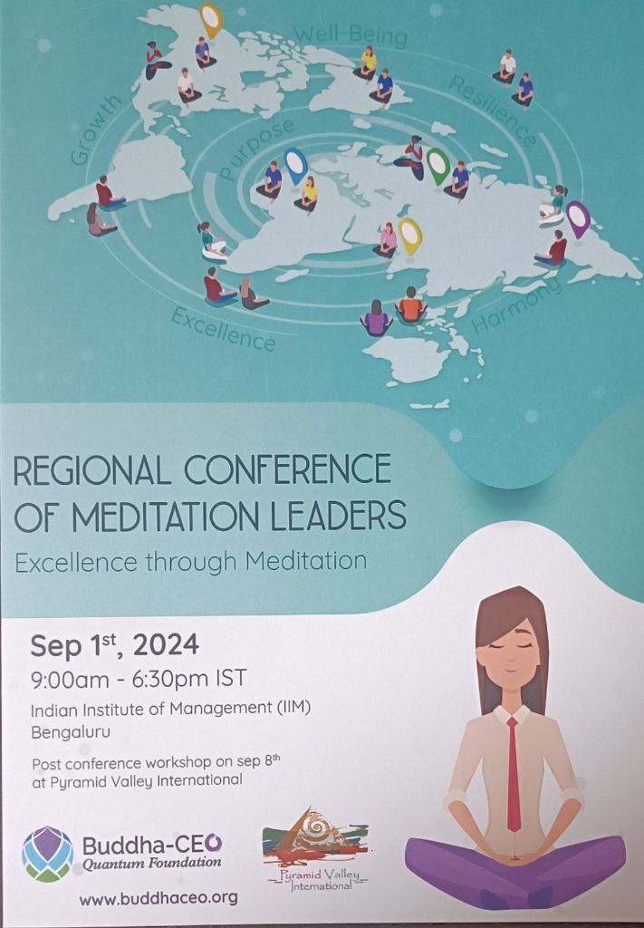 Bangalore,31st August 2024: Buddha-CEO Quantum Foundation, a not for profit, NGO is organizing 3rd Regional Conference of Meditation Leaders (RCML), a first of its kind to be held in Bangalore, in Indian Institute of Management, Bannerghatta Road, Bangalore on coming weekend – Sep 1st in association with Pyramid Valley Internation, Bangalore (PVI). This conference is followed by Post Conference Workshop (Mind to Matter: Tools for Manifestation) on Sunday, Septemeber 8th at Pyramid Valley Internation,