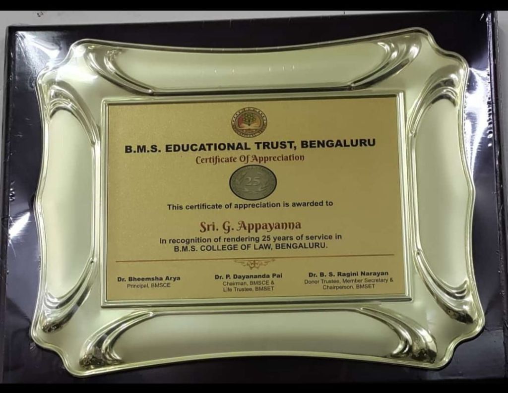 ಸಂಸ್ಥೆಯಲ್ಲಿ 25 ವರ್ಷ ಸುದೀರ್ಘ ಸೇವೆ ಸಲ್ಲಿಸಿದ ಬೋದಕ ಮತ್ತು ಬೋದಕೇತರ ಸಿಬ್ಬಂದಿಗೆ ಸನ್ಮಾನಿಸಿ ಗೌರವಿಸಿದರು. ಜಿ. ಅಪ್ಪಯಣ್ಣ, ಪ್ರೊ. (ಡಾ.)ಸುಜಾತ ಪ್ರಕಾಶ್ ಮತ್ತು ಮೋಹನ್ ಕುಮಾರ್ ರವರನ್ನು ಸನ್ಮಾನಿಸಿ ಅಭಿನಂದಿಸಿದರು.