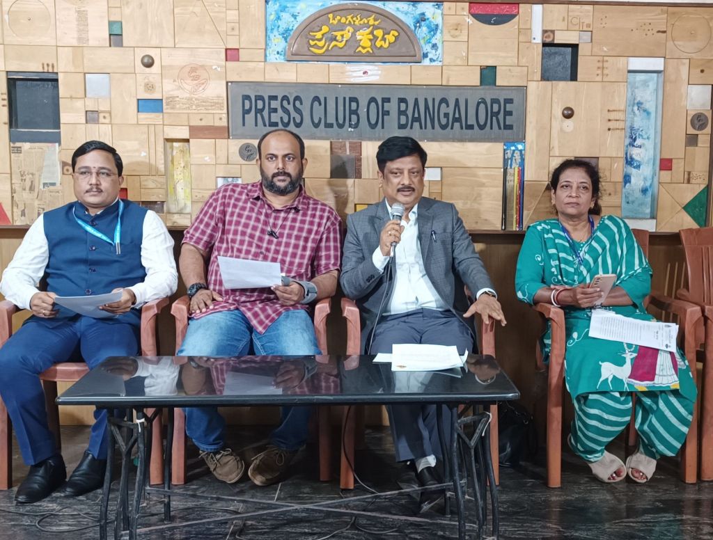 I take this opportunity to thank Smt. Dr. Ragapriya R. IAS, Commissioner of Employment, Smt. Dr Sadhana Pote, KAS, JD, Department of Employment, for giving all the support and guidance to organise this Mega event. Thanks to Dr. Smt. Sadhana Pote, KAS, Director, Department of Employment who is key initiative person and supported all the way. Thanks to Sri. Shivashantaveer Diwaker, Deputy Director, (Rehab)/I/c HOO, GCS, Govt. of India, Sri. Nandakumar R, Sreejeesh S G, Hemanth Kumar and all other Govt. Officials for supporting both technically as well as financially. Dear media friends kindly promote this event to help the needy people and strengthen hands of State and Central Governments and objectives of the KLE Society to make the India “Vikasit Bharat” by 2047, said, Dr. Arunkumar B. Sonappanavar, KLE Society’s S. Nijalingappa College, at a press meet held at press club of bangalore.