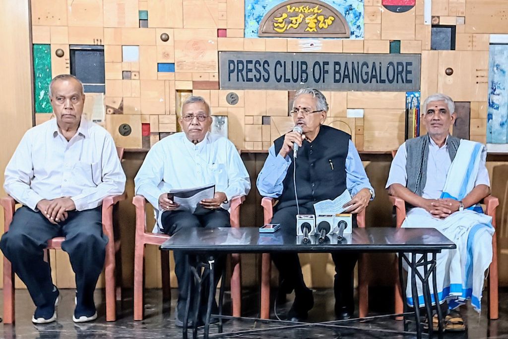Gopalakrishna,Trustee, Vedanta Bharati, B.C. Prabhakar, Eta Hon. President,S. S. Naganand, Trustee, Vedanta Bharati & Sr. Advocate, Supreme Court and Vidwan. Shridhar Hegde Director, Vedanta Bharati were present at press meet.