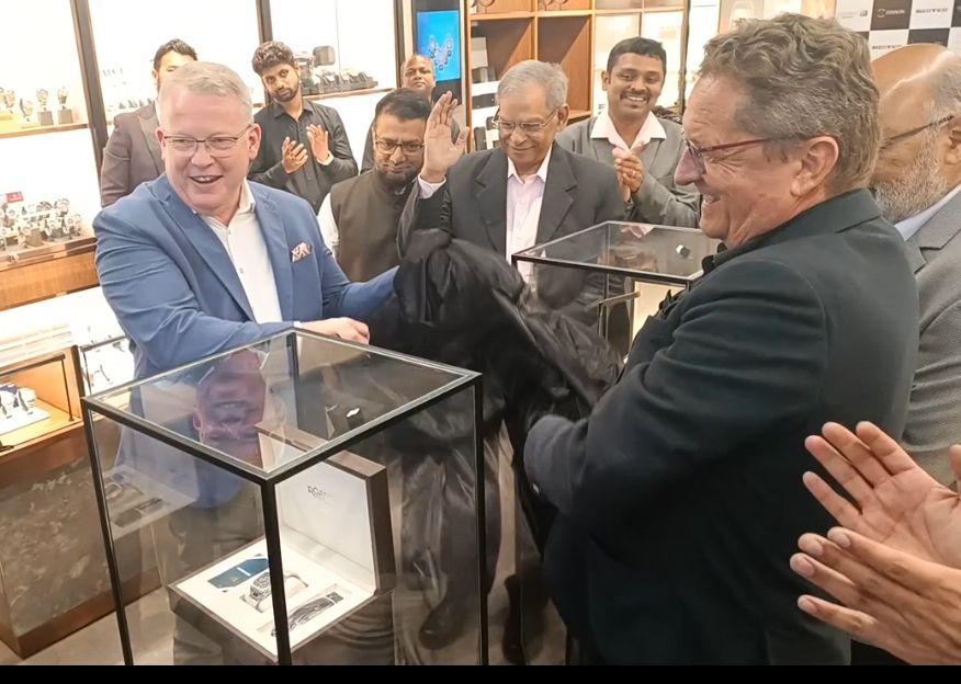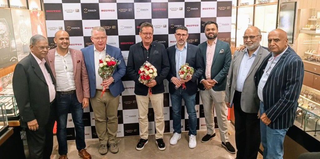 Unveiling the Mechano collection in a gala launch event at the beautiful Zimson watch store in Bengaluru were Christian Frommherz, CEO and owner of Roamer and Jacques du Manoir, Antonello Miserino, CEO at FM Swiss Logistics, and Tony Harris, Sales Director, Roamer and Jacques du Manoir, who were accompanied by Ajay Gopal, Director, Bizotico Group; Akshay Gopal, Director, Bizotico and Movado Group India; Piyush Jain, National Sales Head, Bizotico; Chetan TR, Regional Manager South; Shamoeel, Director, Zimson Watches; and P. Rajendran, General Manager – Sales, Zimson Watches.