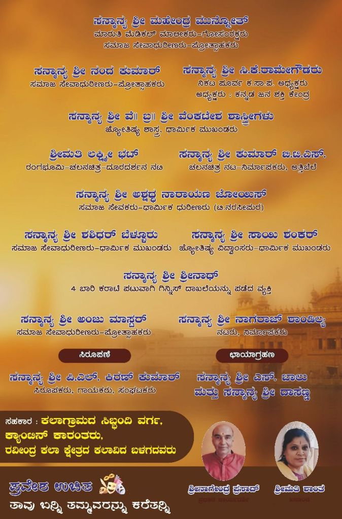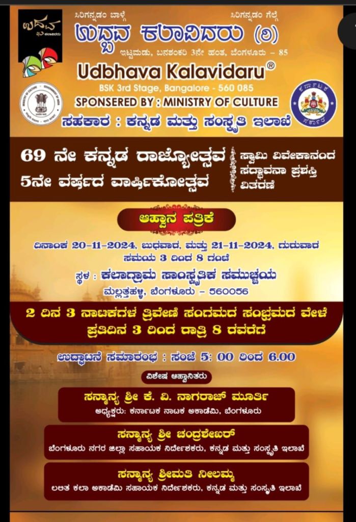 ನಮ್ಮ ಸಂಸ್ಥೆಯ ಐದನೆಯ ವರ್ಷದ ನಾಟಕೋತ್ಸವ ಹಾಗೂ 69ನೆಯ ಕನ್ನಡ ರಾಜ್ಯೋತ್ಸವದ ಪ್ರಯುಕ್ತ ದಿನಾಂಕ 20.11 24 ಬುಧವಾರ
