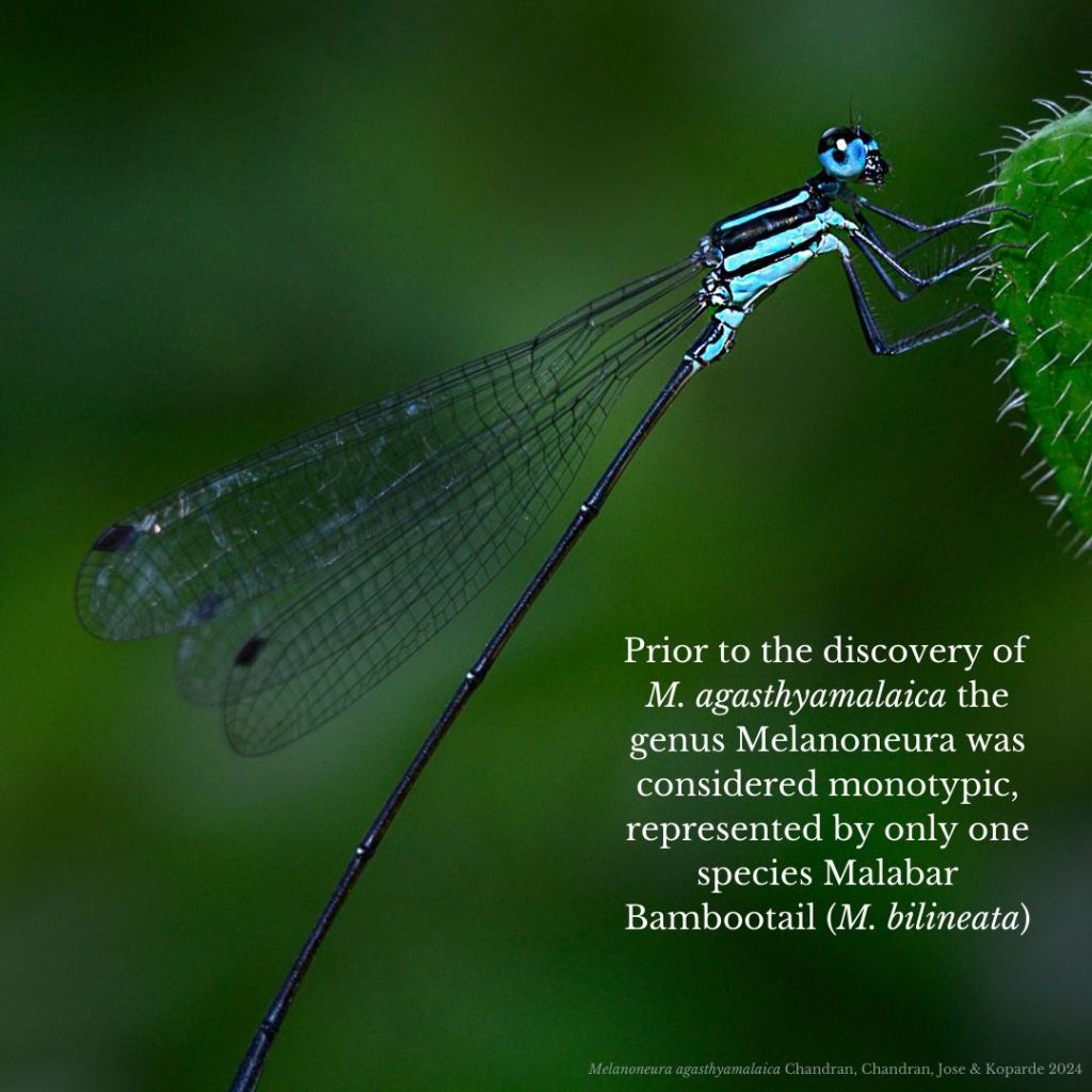 The scientific name of the species, Melanoneura agasthyamalaica, honors the Agasthyamalai landscape of the Western Ghats, where it was discovered, said Vivek Chandran, the lead researcher. The research team included Dr. Pankaj Koparde and Arajush Payra from MIT World Peace University, Pune; Reji Chandran from the Society for Odonate Studies; and Vivek Chandran and Dr. Subin K. Jose from Christ College (Autonomous), Irinjalakuda, Kerala.