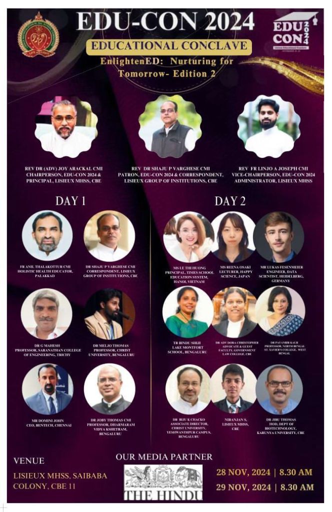 Coimbatore, November 26, 2024: The Lisieux Group of Institutions, a beacon of educational excellence for over half a century, is excited to announce the second edition of its annual education conclave, Edu-Con 2024: ENLIGHTENED: NURTURING FOR TOMORROW. This two-day event, scheduled for November 28th and 29th, 2024, at Lisieux MHSS, Coimbatore, will bring together a diverse community of educators, innovators, and thought leaders to explore the future of education.