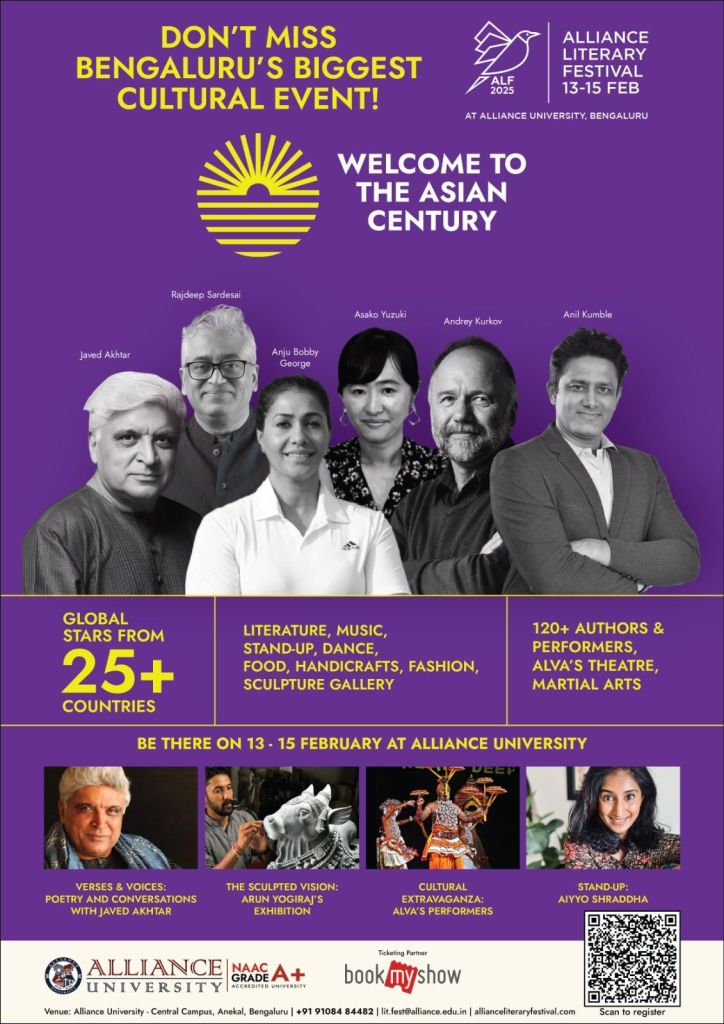 ಅಲೈಯನ್ಸ್ ವಿಶ್ವವಿದ್ಯಾಲಯವು ಫೆಬ್ರವರಿ 13 ರಿಂದ ಫೆಬ್ರವರಿ 15, 2025 ರವರೆಗೆ ನಿಗದಿಪಡಿಸಲಾದ ಮೂರು ದಿನಗಳ ಸಾಹಿತ್ಯ, ಸಂಸ್ಕೃತಿ ಮತ್ತು ಬೌದ್ಧಿಕ ಸಂವಾದವನ್ನು ಆಚರಿಸುವ ಅಲಯನ್ಸ್ ಸಾಹಿತ್ಯ ಉತ್ಸವದ (ALF 4.0) ನಾಲ್ಕನೇ ಆವೃತ್ತಿಯನ್ನು ಹೆಮ್ಮೆಯಿಂದ ಪ್ರಸ್ತುತಪಡಿಸುತ್ತದೆ. ಈ ವರ್ಷದ ವಿಷಯವಾದ “ದಿ ಏಷ್ಯನ್ ಸೆಂಚುರಿ” ಜಾಗತಿಕ ಸಂಸ್ಕೃತಿ, ರಾಜಕೀಯ, ಆರ್ಥಿಕತೆ ಮತ್ತು ಕಲೆಯ ಮೇಲೆ ಏಷ್ಯಾದ ಆಳವಾದ ಪ್ರಭಾವವನ್ನು ಎತ್ತಿ ತೋರಿಸುತ್ತದೆ, ಸಾಹಿತ್ಯ ಉತ್ಸಾಹಿಗಳು, ಶಿಕ್ಷಣ ತಜ್ಞರು, ನೀತಿ ನಿರೂಪಕರು, ರಾಜತಾಂತ್ರಿಕರು ಮತ್ತು ಸಾಂಸ್ಕೃತಿಕ ಅಭಿಜ್ಞರು ಅರ್ಥಪೂರ್ಣ ಸಂಭಾಷಣೆಗಳು ಮತ್ತು ತಲ್ಲೀನಗೊಳಿಸುವ ಅನುಭವಗಳಲ್ಲಿ ತೊಡಗಿಸಿಕೊಳ್ಳಲು ಅಸಾಧಾರಣ ವೇದಿಕೆಯನ್ನು ಕಲ್ಪಿಸಿದೆ.