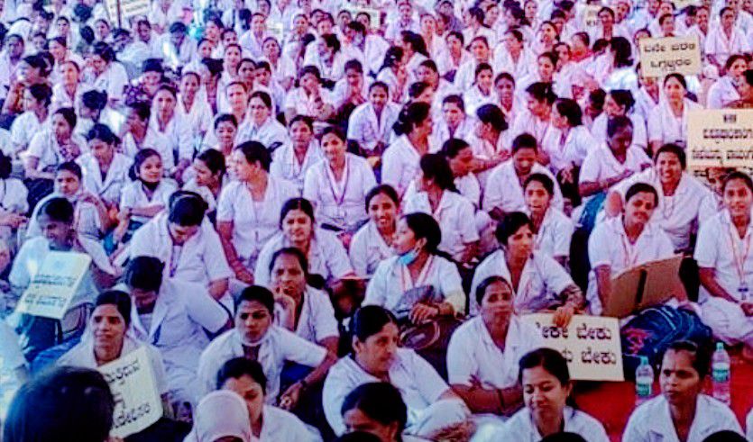 ಬೆಂಗಳೂರು, ಮಾರ್ಚ್ 7: ಶುಶ್ರೂಷಾಧಿಕಾರಿಗಳಿಗೆ (ನರ್ಸಿಂಗ್ ಆಫೀಸರ್) ಮೂಲ ವೇತನ ನೀಡದಿದ್ದರೆ, ಗಾಂಧಿ ದಂಡಿಯ ಸತ್ಯಾಗ್ರಹ ದಿನವಾದ ಮಾರ್ಚ್ 12ರಂದು ಸಾಮೂಹಿಕ ರಾಜೀನಾಮೆ ನೀಡಲಾಗುವುದು ಎಂದು ಕರ್ನಾಟಕ ರಾಜ್ಯ ಗುತ್ತಿಗೆ ಶುಶ್ರೂಷಾಧಿಕಾರಿಗಳ ನೌಕರರ ಕ್ಷೇಮಾಭಿವೃದ್ಧಿ ಸಂಘದ ರಾಜ್ಯಾಧ್ಯಕ್ಷೆ ರಾಧಾ ಸುರೇಶ್ P.N. ಎಚ್ಚರಿಸಿದ್ದಾರೆ.