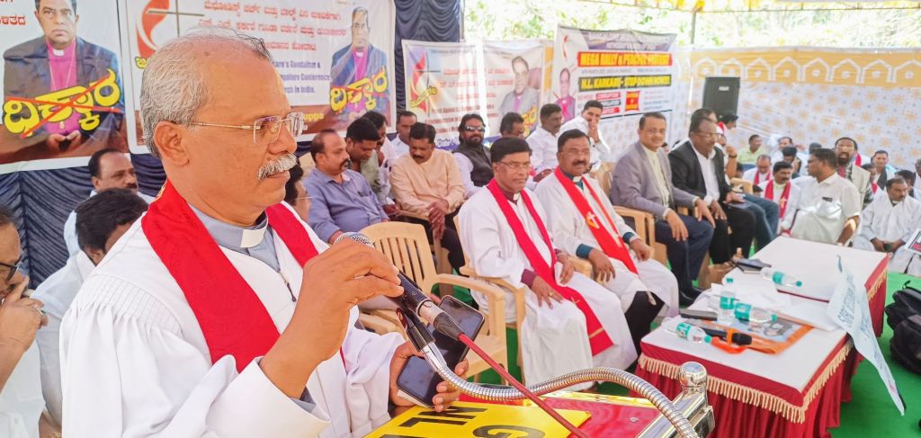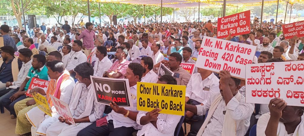 The protest was attended by retired IAS officer Shanthakumari, Indian Welfare Association State President Sanjay Jagirdar, and Christian Maha Sabha’s Prajwal Swamy, among others. Addressing the gathering, they alleged that “N.L. Karkare is highly corrupt and has misused the entire administration of the Methodist Church. Despite a restraining order from the High Court, he is still trying to continue as Bishop. There are over 210 criminal cases registered against him.”
