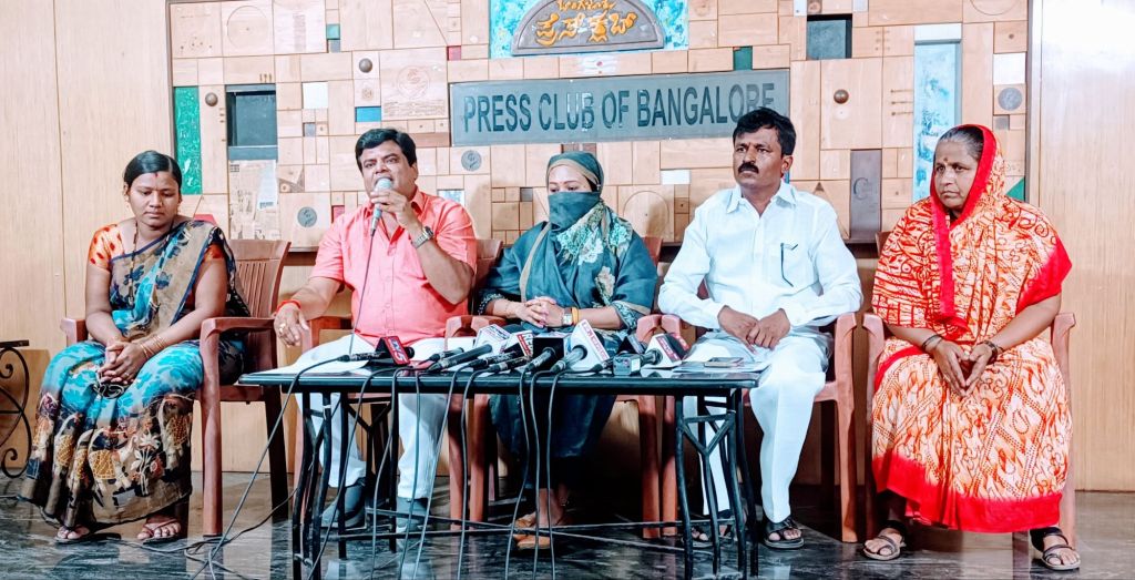 Bengaluru: A press conference was held at the Press Club of Bengaluru, where the victim, Congress leader Laggere Narayanaswamy, and former BBMP member Velunayakar leveled serious allegations of rape and honeytrapping against MLA Munirathna.