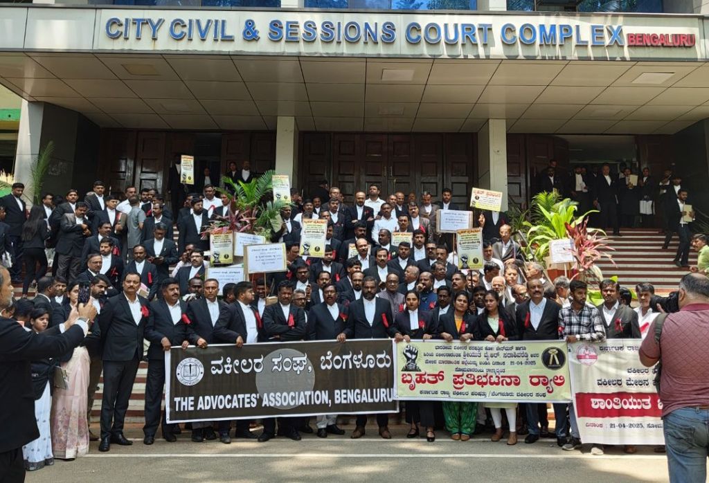 The protest march commenced at 11:00 AM from the premises of the Karnataka State Bar Council office and concluded at the City Civil Court complex. Hundreds of advocates participated in the march, wearing red bands on their right arms as a symbolic gesture of protest against the inhuman and deplorable act.