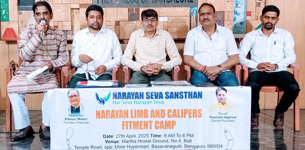 Bengaluru, April 24 – Continuing its commitment to supporting the differently-abled, Udaipur-based NGO Narayan Seva Sansthan will host its third annual Narayan Limb and Caliper Fitment Camp in Bengaluru on Sunday, April 27. The free camp will take place at Maratha Hostel Ground, Bull Temple Road in Basavanagudi, from 8:00 AM to 5:00 PM.