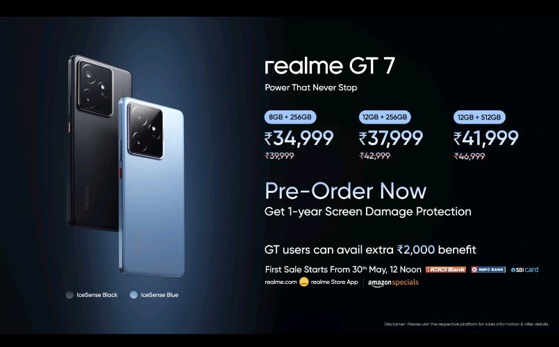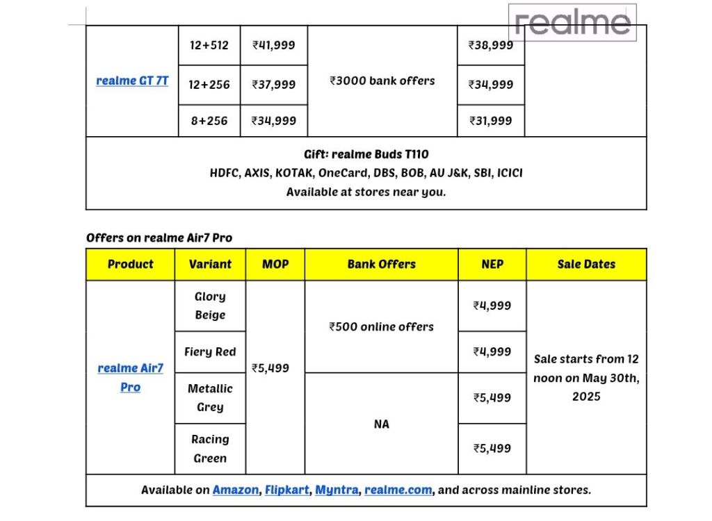 The realme GT 7 Series and Buds Air 7 Pro will go on sale from 12 noon, May 30, 2025, across online and offline platforms.