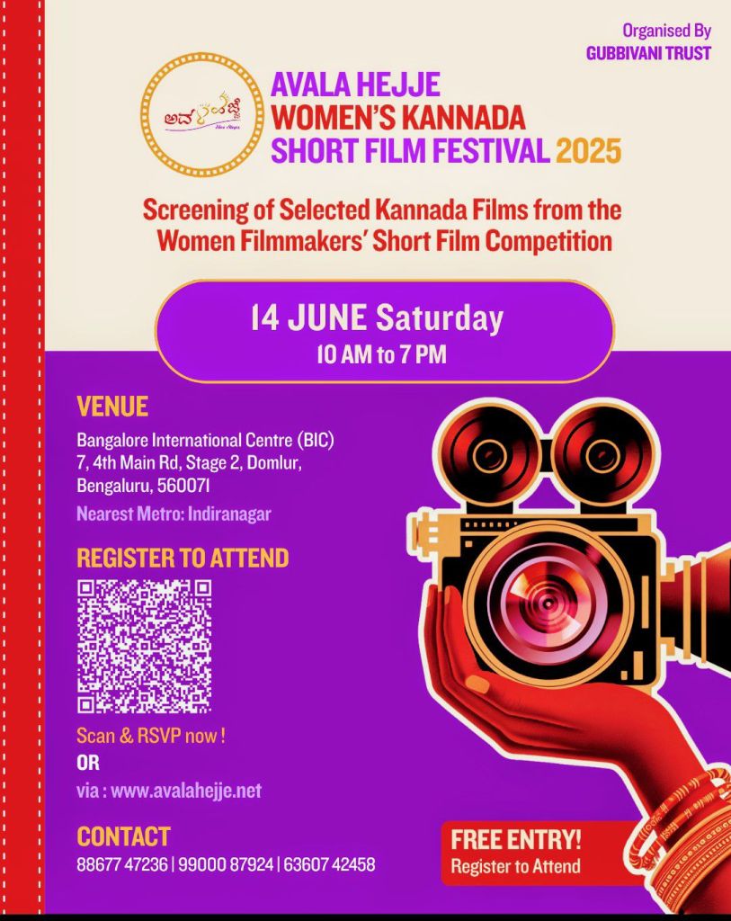 The ‘Avala Hejje’ Short Film Festival 2025, an exclusive platform dedicated to celebrating women directors in Kannada cinema, will take place on Saturday, June 14 at the Bangalore International Centre. Organized by Gubbivani Trust, the event has witnessed an overwhelming response with around 60 entries from women filmmakers across Karnataka – ranging from a 14-year-old budding talent to a Kannadiga woman based in the United States.