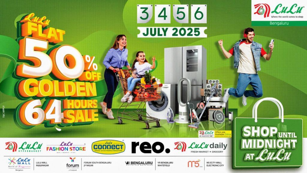 With participation from over 300 leading brands, the sale promises to be one of the largest retail events the city has seen this year. The discount bonanza will take place at all major Lulu outlets in Bengaluru, including Lulu Mall and Lulu Hypermarket in Rajajinagar, Lulu Connect and REO at VR Mall, Whitefield, and Lulu Daily outlets at Forum Mall Falcon City and M5 ECity Mall, Electronic City.
