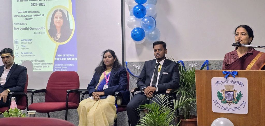ಸೈಂಟ್ ಜೋಸೆಫ್ ಯೂನಿವರ್ಸಿಟಿಯ ಸಾಮಾಜಿಕ ಕಾರ್ಯಶಾಸ್ತ್ರ ವಿಭಾಗವು 2025–26ನೇ ಶೈಕ್ಷಣಿಕ ಸಾಲಿನ ಮಾನವ ಸಂಪತ್ತು (HR) ವೇದಿಕೆಯನ್ನು “ವರ್ಕ್-ಲೈಫ್ ಬ್ಯಾಲೆನ್ಸ್” ಎಂಬ ಮಹತ್ವದ ವಿಷಯದಡಿ ದಿ ನೊಬಿಲಿ ಹಾಲ್ನಲ್ಲಿ ವಿಜೃಂಭಣೆಯಿಂದ ಉದ್ಘಾಟಿಸಿತು.