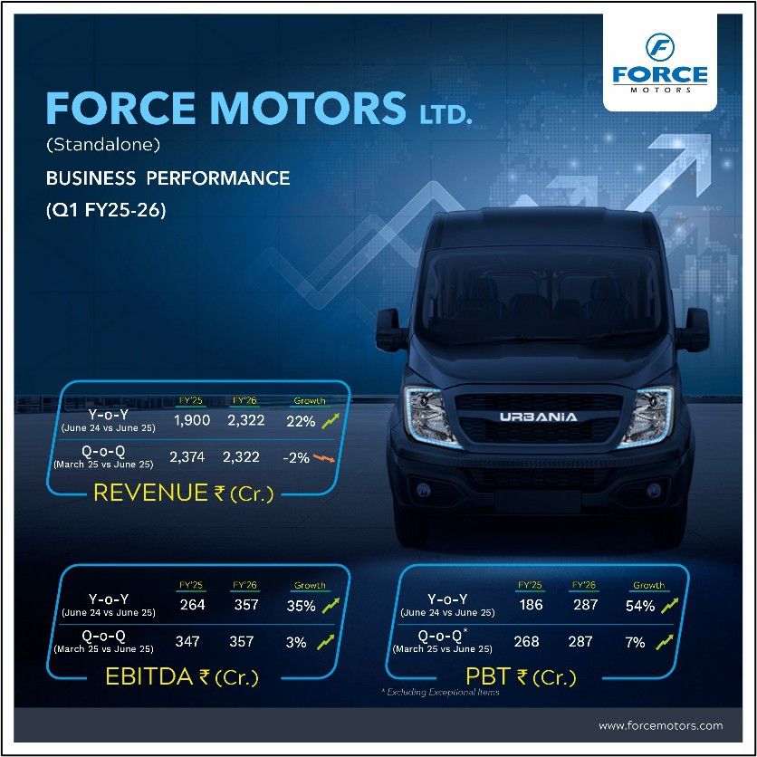 Bengaluru, July 25, 2025: Force Motors Limited, India’s leading van manufacturer and a key automotive player, has reported an impressive financial performance for the first quarter of FY2025-26, driven by strong domestic demand and operational efficiency.